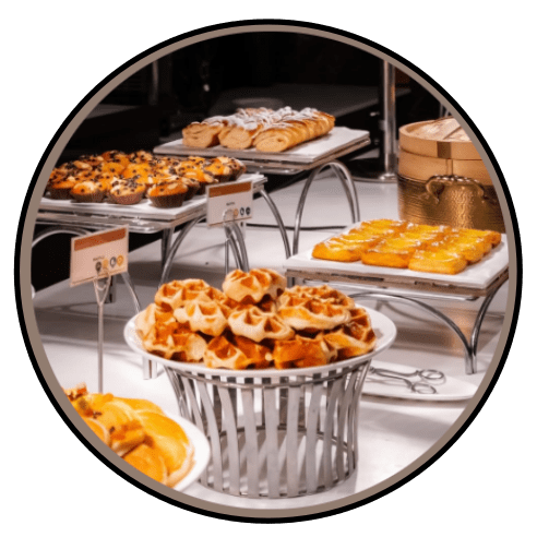 - Delicate pastries & bites : Mini croissants, biscotti, soft cakes, finger-food sweets and savory snacks; all prepared with high-quality ingredients and attention to flavor and texture.